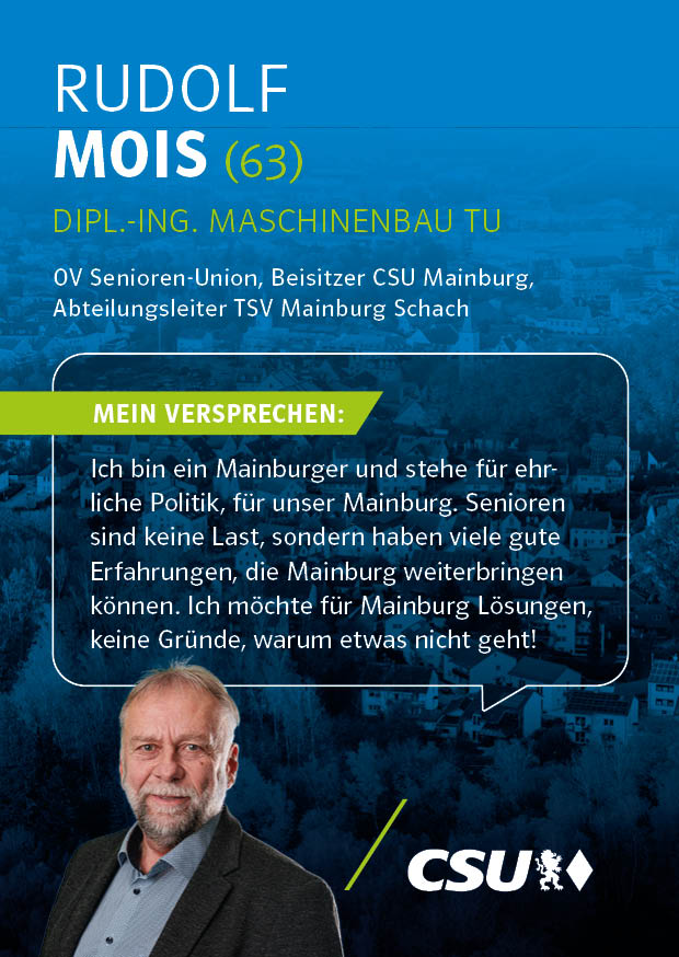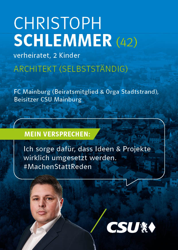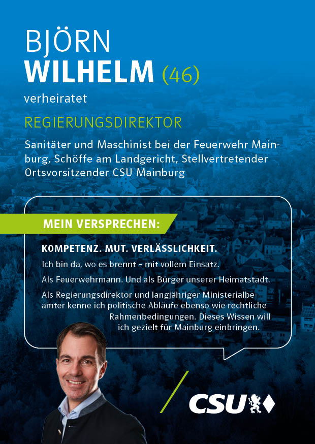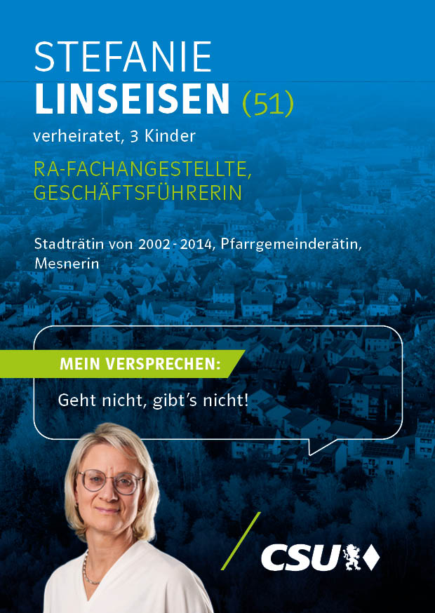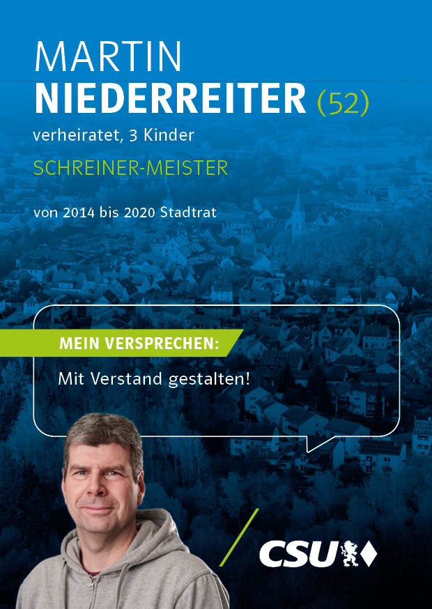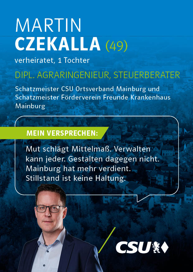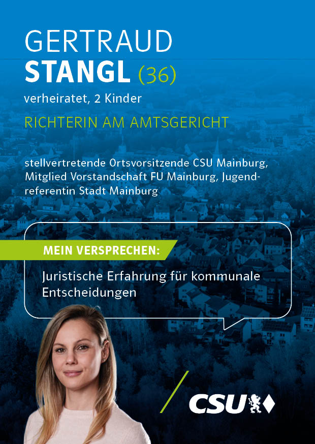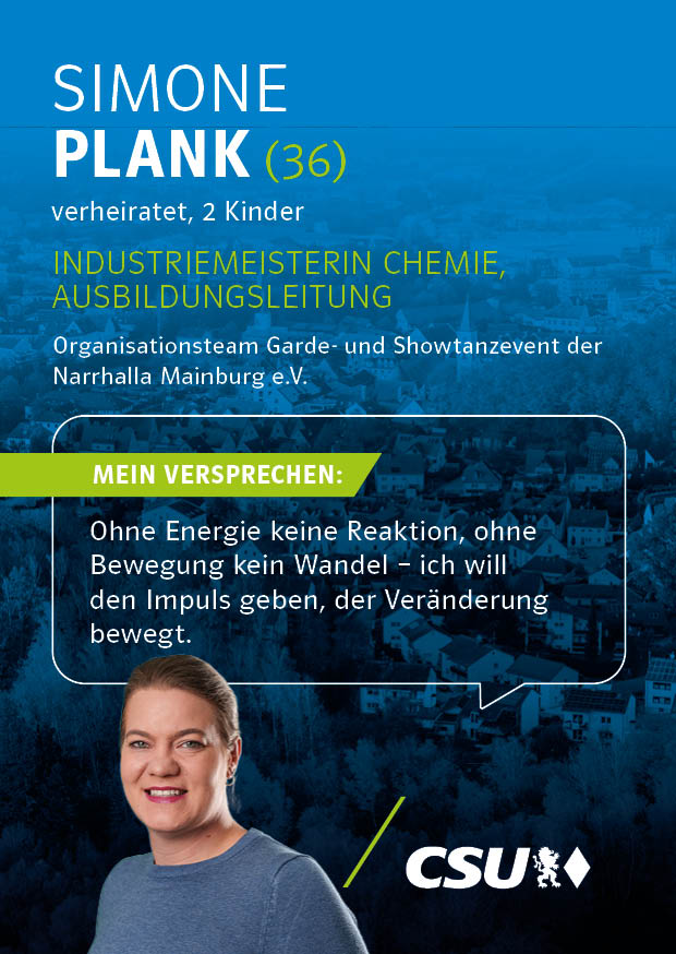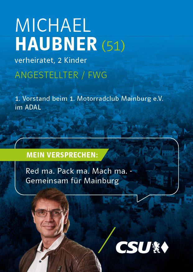 Unsere Kandidatinnen und Kandidaten für die Kommunalwahl stehen für Verlässlichkeit, Kompetenz und eine starke Zukunft unserer Stadt. Mit klaren Zielen, regionaler Verwurzelung und dem festen Willen, Verantwortung zu übernehmen, setzen sie sich für die Anliegen der Bürgerinnen und Bürger von Mainburg ein.